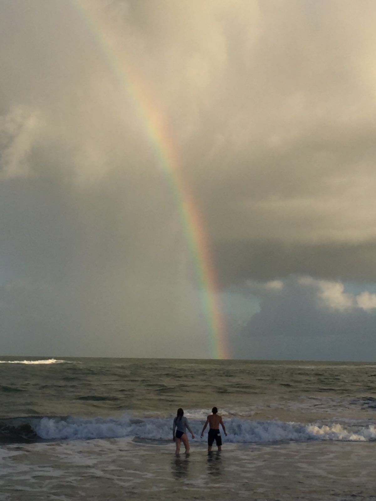 A rainbow at the end of the day at Porto de Galinhas beach, Brazil. Two of my children were swimming and just stopped and looked up in wonder.